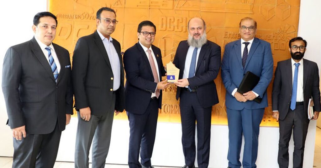 বাংলাদেশে সফররত পাকিস্তানের বাণিজ্যমন্ত্রী জাম কামাল খান আজ রাজধানী ঢাকায় মতিঝিলের ঢাকা চেম্বার অব কমার্স অ্যান্ড ইন্ডাস্ট্রি (ডিসিসিআই) ভবনে চেম্বারের সভাপতি তাসকীন আহমেদের সঙ্গে এক সৌজন্য সাক্ষাৎ করেন। এই বৈঠকে দুদেশের মধ্যে ব্যবসা-বাণিজ্য এবং দ্বিপাক্ষিক সম্পর্কের উন্নয়নের বিভিন্ন দিক নিয়ে গভীর আলোচনা হয়।