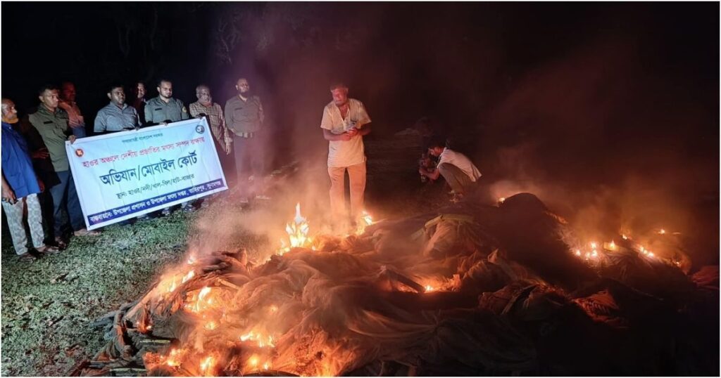 অভিযানে জব্দ করা ৩ হাজার মিটার নিষিদ্ধ জাল আগুনে পুড়িয়ে ধ্বংস করা হয়। উল্লেখ্য, জাল জব্দের এই কার্যক্রমের মাধ্যমে হাওর এলাকার মাছ ও মৎস্য সম্পদের গুরুত্ব ইতিমধ্যে তুলে ধরা হয়েছে।