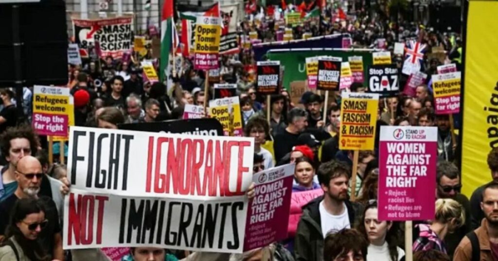 লন্ডনের কেন্দ্রীয় এলাকায় গত শনিবার অনুষ্ঠিত হয়েছে অভিবাসনবিরোধী এক বিশাল সমাবেশ, যেখানে অংশ নিয়েছেন লাখো মানুষ। এই সমাবেশে ইংল্যান্ড ও ব্রিটেনের জাতীয় পতাকা হাতে বিক্ষোভকারীরা পথে নেমে পৃথক পদযাত্রা করে ও পুলিশের সাথে সংঘর্ষে জড়িয়ে পড়ে। এই ঘটনার মধ্য দিয়ে এটি যুক্তরাজ্যে সাম্প্রতিক সময়ের সবচেয়ে বৃহৎ ডানপন্থি বিক্ষোভের মধ্যে একটি হিসেবে বিবেচনা করা হচ্ছে। মেট্রোপলিটন