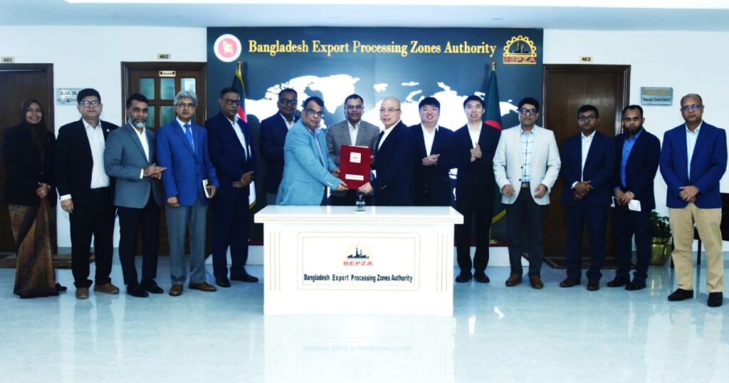 চুক্তি স্বাক্ষর অনুষ্ঠানে বেপজা নির্বাহী চেয়ারম্যান মেজর জেনারেল আবুল কালাম মোহাম্মদ জিয়াউর রহমান, বিএসপি, এনডিসি, পিএসসি প্রতিষ্ঠানটির পক্ষ থেকে শুভ সূচনা করেন। সাথে উপস্থিত ছিলেন বেপজার সদস্য (বিনিয়োগ উন্নয়ন) মোঃ আশরাফুল কবীর এবং কেএমকে ইন্ডাস্ট্রিয়াল লিমিটেডের চেয়ারম্যান উ ইউজিয়াং। এই চুক্তি ১৪ সেপ্টেম্বর, ২০২৫ তারিখে স্বাক্ষরিত হয়।