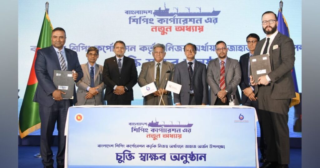 নৌপরিবহন মন্ত্রণালয়ের আওতাধীন বাংলাদেশ শিপিং কর্পোরেশন (বিএসসি) নিজস্ব অর্থায়নে দুটি আধুনিক বাল্ক ক্যারিয়ার জাহাজ সংগ্রহের পরিকল্পনা সম্পন্ন করেছে। এই লক্ষ্যে সম্প্রতি বিএসসি এবং সরবরাহকারী প্রতিষ্ঠান হেলেনিক ড্রাই বাল্ক ভেঞ্চারস এলএলসি এর মধ্যে জাহাজ সরবরাহের চুক্তি স্বাক্ষর করা হয়। রবিবার (২১ সেপ্টেম্বর) সন্ধ্যায় রাজধানীর একটি হোটেলে অনুষ্ঠিত এই চুক্তি স্বাক্ষর অনুষ্ঠানে প্রধান অতিথি হিসেবে উপস্থিত ছিলেন
