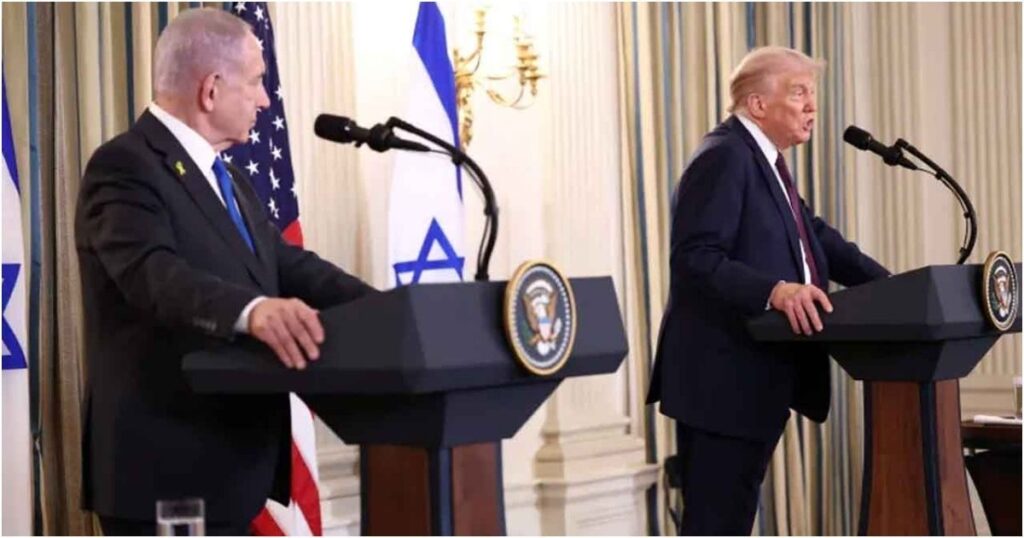 ট্রাম্প হুঁশিয়ারি দেন, যদি আরব দেশগুলো হামাস ও গাজাকে নিরস্ত্র করতে ব্যর্থ হয়, তাহলে ইসরায়েল যেভাবে করছে, সেখানে মার্কিন সরকারও সম্পূর্ণ সমর্থন দেবে। তিনি বলেন, ‘অর্থাৎ, হামাস যদি আজকের প্রস্তাব গ্রহণ না করে বা গ্রহণ করেও পুনঃপ্রতিষ্ঠায় চেষ্টা চালায়, তাহলে ইসরায়েল তাদের নির্মূল করবে।’ তিনি আরও জানান, ‘ইসরায়েল হামাসকে নিশ্চিহ্ন করবে। এটি সহজ উপায়ে বা কঠিন উপায়ে করতে পারে, তবে করতে হবে। আমরা সহজ উপায়ের পক্ষেই থাকবো।’