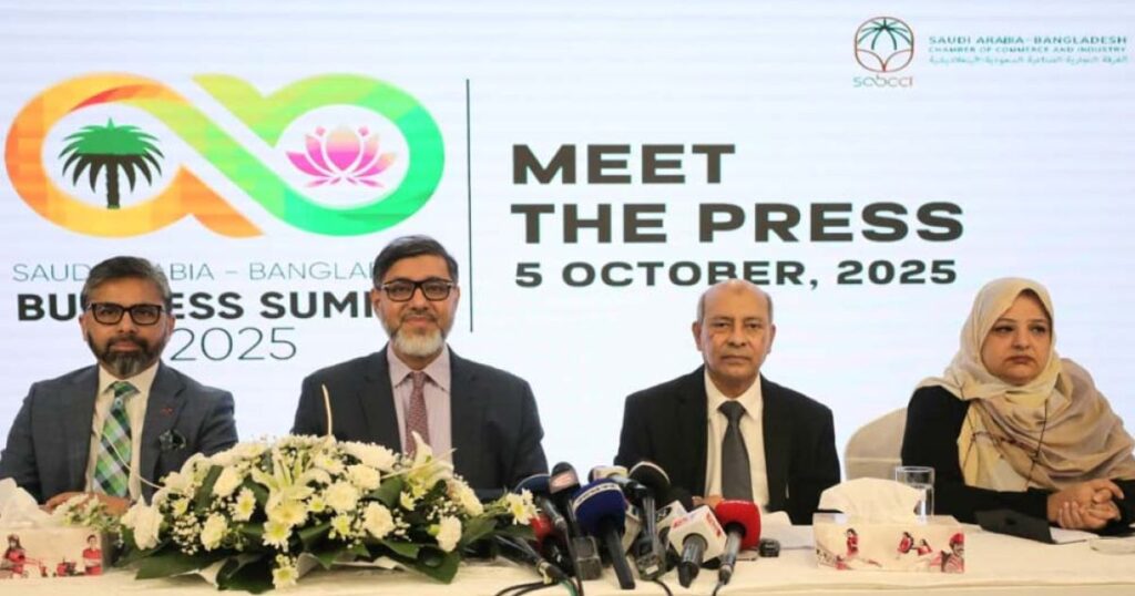 সৌদি আরব ও বাংলাদেশের মধ্যে অর্থনৈতিক সম্পর্ক, বাণিজ্য বৃদ্ধি এবং সরাসরি বিনিয়োগের সম্ভাবনা জোরদার করতে আজ (সোমবার) রাজধানী ঢাকায় শুরু হলো তিন দিনব্যাপী ‘সৌদি আরব-বাংলাদেশ বিজনেস সামিট’। এই আন্তর্জাতিক সম্মেলনটি সৌদি আরব-বাংলাদেশ চেম্বার অব কমার্স অ্যান্ড ইন্ডাস্ট্রির (এসএবিসিসিআই) যৌথ উদ্যোগে আয়োজিত হয়েছে, যার মূল লক্ষ্য হলো বাংলাদেশি পণ্যের সৌদি বাজারে উপস্থিতি বৃদ্ধি করা এবং একদিকে