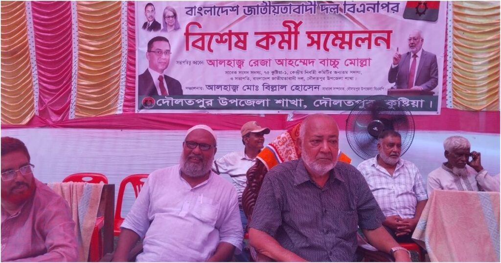 বৃহস্পতিবার সকালে দৌলতপুর উপজেলার থানার মোড়ের বাজারে উপজেলা বিএনপির আয়োজিত এক কর্মী সম্মেলনে তিনি প্রধান অতিথির বক্তৃতা করেন। সেখানে তিনি বলেন, জনগণের ভোটাধিকার ও গণতন্ত্র পুনরুদ্ধারে বিএনপির চলমান আন্দোলন আরও শক্তিশালী করতে সবাইকে একযোগে কাজ করতে হবে। এই কর্মী সম্মেলন থেকেই আমরা আগামী নির্বাচনে এই আসনে বিএনপিকে বিজয়ী করার অঙ্গীকার করছি।