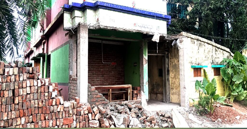 কেশবপুরে সড়কের জায়গা দখল করে প্রাচীর নির্মাণ, জনতা ভেঙে দিল