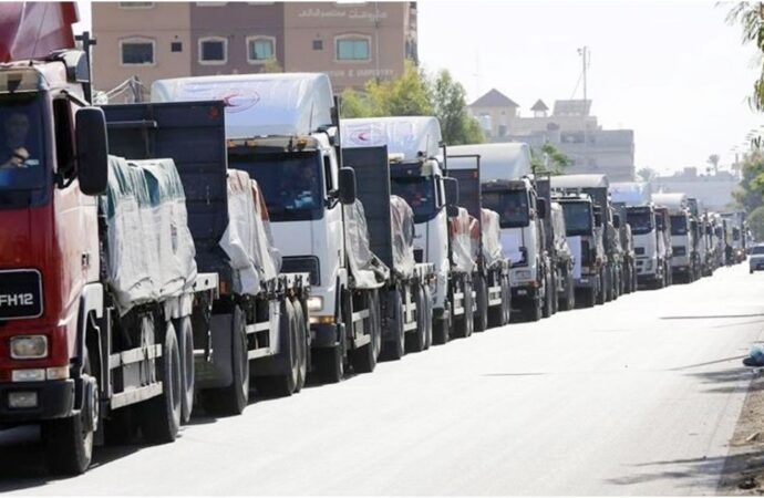 ইসরায়েলের ভয়াবহ সামরিক অভিযান ও এর কারণে খাদ্য, ওষুধ ও প্রয়োজনীয় সামগ্রীর ঘাটতিতে বিপর্যস্ত গাজা উপত্যকায় আসছে ৬০০ ত্রাণবাহী ট্রাক। প্রতিবেদনে বলা হয়েছে, এ ট্রাকগুলো বৃহস্পতিবার সন্ধ্যার পর থেকে গাজায় প্রবেশ শুরু করবে। রয়টার্সের এক প্রতিবেদনে জানানো হয়, এই তথ্য ইসরায়েলের প্রতিরক্ষা বাহিনী (আইডিএফ) থেকে এসেছে।