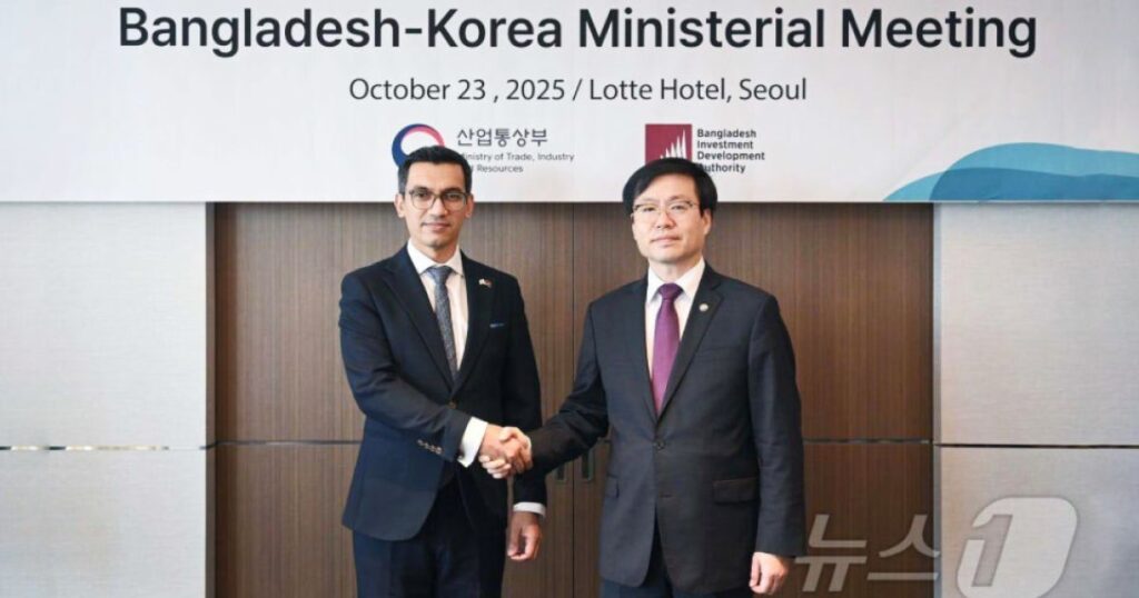 বাংলাদেশ ও দক্ষিণ কোরিয়ার মধ্যে দ্বিপাক্ষিক অর্থনৈতিক সম্পর্ক আরও দৃঢ় করার লক্ষ্য নিয়ে একটি গুরুত্বপূর্ণ উদ্যোগ গ্রহণের প্রক্রিয়া এগিয়ে চলছে। দুই দেশের মধ্যে কমপ্রিহেনসিভ ইকোনমিক পার্টনারশিপ এগ্রিমেন্ট (সিইপিএ) চুক্তি দ্রুত সময়ের মধ্যে চূড়ান্ত করার কার্যক্রম শুরু হয়েছে। এই বিষয়ে এক গুরুত্বপূর্ণ বৈঠক অনুষ্ঠিত হয় গত বুধবার সিউলে, যেখানে বাংলাদেশের বিনিয়োগ উন্নয়ন কর্তৃপক্ষের (বিডা) নির্বাহী চেয়ারম্যান আশিক চৌধুরী ও দক্ষিণ কোরিয়ার বাণিজ্যমন্ত্রী ইয়ো হান-কু অংশ নেন। বৈঠকে দুই পক্ষই এই চুক্তিকে সময়োপযোগী এবং অত্যন্ত গুরুত্বপূর্ণ বলে স্বীকার করেন। ব্রিফিংয়ে জানানো হয়েছে, এই চুক্তি বাংলাদেশের স্বল্পোন্নত দেশ (এলডিসি) থেকে উত্তরণের প্রাক্কালে নতুন বিনিয়োগ ও বাণিজ্য সম্পর্ক গড়ে তুলতে সহায়তা করবে। এর মাধ্যমে দুই দেশের মধ্যে বাণিজ্য, বিনিয়োগ ও প্রাতিষ্ঠানিক সহযোগিতা আরও সুসংহত হবে। আশিক চৌধুরী বলেন, ‘দক্ষিণ কোরিয়া বাংলাদেশের উপর দীর্ঘদিন ধরেই আস্থা ও উন্নয়ন সহযোগিতা প্রদান করছে। আমরা চাই এই সিইপিএ দ্রুত চূড়ান্ত হয়ে আসুক। চুক্তিটি বাস্তবায়িত হলে ইলেকট্রনিক্স, মোবিলিটি, নবায়নযোগ্য জ্বালানি, টেক্সটাইল ও অবকাঠামোসহ বিভিন্ন খাতে কোরিয়ান বিনিয়োগ বহুগুণ বাড়বে।’ তিনি আরও জানান, কোরিয়ান বিনিয়োগকারীদের সঙ্গে সরাসরি আলোচনায় বসে তারা শুল্ক, রেমিট্যান্স ও করসংক্রান্ত বিষয়গুলোকে আরও সহজ, দ্রুত ও আধুনিক করে তোলার জন্য কাজ করছেন। এর জন্য বিডা ৩২ দফা ইনভেস্টমেন্ট ক্লাইমেট রিফর্ম এজেন্ডা বাস্তবায়নের মাধ্যমে সমস্যা সমাধানে অগ্রसरChapঢ করছে, যা প্রধান উপদেষ্টা কার্যালয়ের তত্ত্বাবধানে এগুচ্ছে। উদীয়মান এই সফলতার প্রসঙ্গে দক্ষিণ কোরিয়ার বাণিজ্যমন্ত্রী ইয়ো হান-কু বলেন, ‘বাংলাদেশ দ্রুত এগুচ্ছে এবং এর আধুনিক উৎপাদন ও সেবা খাতে অগ্রগতি অত্যন্ত প্রশংসনীয়। আমরা এই উন্নয়নের অংশীদার হতে আগ্রহী।’ তিনি অতীতে বাংলাদেশের সঙ্গে কাজ করার অভিজ্ঞতা বরাবরই উল্লেখ করে বলেন, বাংলাদেশে আমার কয়েকবার সফর হয়েছে এবং এখানকার অগ্রগতি আমি নিবিরভাবে দেখেছি। সেই কারণেই বাংলাদেশের সঙ্গে আরও গভীর অর্থনৈতিক সম্পর্ক গড়ে তুলতে আগ্রহ প্রকাশ করেন। তিনি বিশেষ করে বাংলাদেশে কোরিয়ান ব্যবসায়ীদের আমন্ত্রণ জানিয়ে বলেন, ‘আমরা চাই কোরিয়ান ব্যবসায়ী প্রতিনিধিদল আসুক, দেখুক কীভাবে অবকাঠামো, ডিজিটাল সার্ভিস ও ব্যবসা সংস্কারে পরিবর্তন আনা হয়েছে।’ উল্লেখ্য, বর্তমানে বাংলাদেশে দক্ষিণ কোরিয়ার বিনিয়োগ প্রায় ১.৫৬ বিলিয়ন মার্কিন ডলার, যেখানে ১৫০টির বেশি কোরিয়ান কোম্পানি কাজ করছে। দক্ষিণ কোরিয়া এখন বাংলাদেশের পঞ্চম বৃহত্