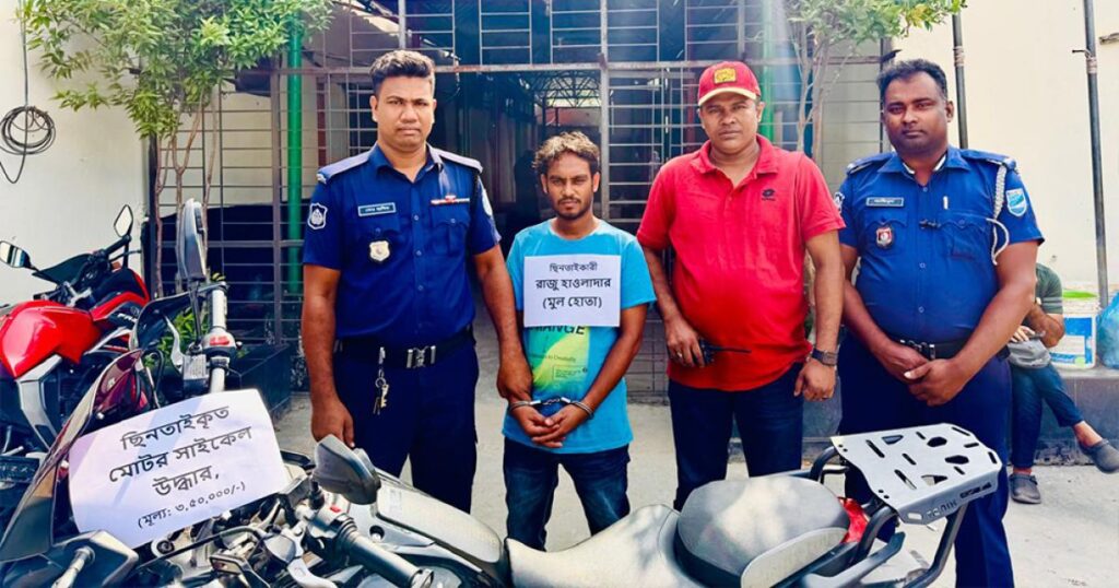 ঢাকার দক্ষিণ কেরানীগঞ্জে পুলিশের কঠোর অভিযান চালিয়ে একজন দুর্ধর্ষ ছিনতাইকারীকে গ্রেপ্তার করা হয়েছে। ভোরের আধা ঘণ্টার মধ্যে নিজ বাড়ি থেকে তাকে আটক করা হয়। এ সময় তার কাছ থেকে ছিনতাইকৃত একটি মোটরসাইকেল, এক আইফোন, নগদ টাকা এবং অন্যান্য মালামাল জব্দ করা হয়েছে। প্রত্যক্ষদর্শীরা জানিয়েছেন, গত ৫ নভেম্বর ভোরে অভিযুক্ত রাজু হাওলাদার ও তার সহযোগীরা কেরানীগঞ্জ