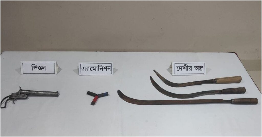 মেহেরপুরের গাংনী উপজেলায় গ মনোবলের সঙ্গে অভিযান চালিয়ে সেনাবাহিনী এক ব্যক্তির কাছ থেকে একটি ওয়ান শুটার পিস্তল, তিন রাউন্ড গুলি এবং তিনটি ধারালো দেশীয় অস্ত্র উদ্ধার করেছে। এই অভিযানটি শনিবার দিবাগত রাতের দিকে গোপন সংবাদের ভিত্তিতে পরিচালিত হয়। গাংনী সেনাবাহিনী ক্যাম্পের সূত্রে জানা গেছে, অভিযানের জন্য স্পেশাল টিম ভাটপাড়া এলাকার নির্দিষ্ট স্থানে পৌঁছালে, অপরাধীদের কাছে এই খবর পৌঁছায়। অপরাধ চক্রটি উপস্থিতি টের পেয়ে দ্রুত পালিয়ে যায়, তবে তখনই ঘটনাস্থল থেকে তাদের ফেলে যাওয়া অস্ত্র, গুলি ও দেশীয় অস্ত্র উদ্ধার করা হয়। উদ্ধারকৃত অস্ত্র ও গুলি পরবর্তী আইনগত প্রক্রিয়ার জন্য গাংনী থানায় হস্তান্তর করা হয়েছে। এই অভিযান সমাজে শান্তি ও নিরাপত্তা বজায় রাখতে একটি গুরুত্বপূর্ণ পদক্ষেপ বলে মনে হয়।