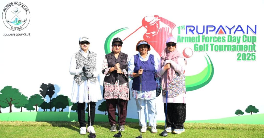 রূপায়ন গ্রুপের পৃষ্ঠপোষকতায় রাজধানীর জলসিঁড়ি গলফ ক্লাবে প্রথম বার অনুষ্ঠিত হচ্ছে আর্মড ফোর্সেস ডে কাপ গলফ টুর্নামেন্ট। এই টুর্নামেন্টে দেশের বিভিন্ন গলফ ক্লাবের ৬০০’র বেশি গলফার তিন দিনের জন্য অংশ নিচ্ছেন। প্রথম দিন, সুদৃশ্য ৯ হোলের পার-৩৬ গলফ কোর্সে, মোট ১০০ জন গলফার অংশ নেন, যার মধ্যে ২৫ জন নারী এবং ৫ জন জুনিয়র খেলোয়াড়
