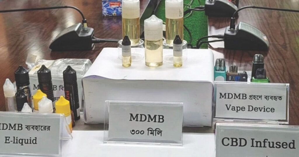 দেশে প্রথমবারের মতো নতুন ধরনের সিনথেটিক মাদক এমডিএমবি (মেটামফেটামিন ডাইএথাইলামাইনে) এর চালান জব্দ করা হয়েছে। ঢাকার মিরপুরের আশরাফুল ইসলাম একাধিক উচ্চবিত্ত পরিবারের সদস্যের মধ্যে এই মারাত্মক মাদক সরবরাহ করতেন বলে প্রাথমিক তদন্তে জানা গেছে। তিনি মূলত ভেপ ডিভাইস ব্যবহারকারীদের লক্ষ্য করে এই মাদকের বিক্রির জন্য অনলাইন মার্কেট গড়ে তুলছিলেন। এ ঘটনায় তার সঙ্গে অভিযানে সংশ্লিষ্ট