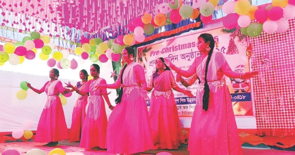 সকাল থেকেই চাম্পারায় প্রকল্পের প্রাঙ্গণ সাজানো ছিল রঙিন বেলুন, ঝালর এবং বড়দিনের ঝাড়বাতি দিয়ে। উৎসবের প্রথম ভাগ শুরু হয় বড়দিনের ঐতিহ্যবাহী কেক কাটা দিয়ে। এরপর চলে সাংস্কৃতিক পরিবেশনা, যেখানে শিশুরা তাদের নিজস্ব সংস্কৃতি এবং বড়দিনের জনপ্রিয় গান পরিবেশন করে। ছোট ছোট শিশুদের নাচের সারি এবং গানের সুর চারিদিকের পরিবেশকে হয়ে ওঠে এক দারুণ উৎসবমুখর মুহূর্ত।