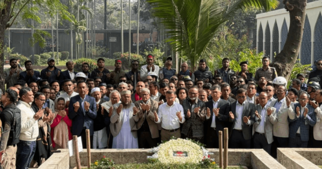 বিএনপির ভারপ্রাপ্ত চেয়ারম্যান তারেক রহমান আজ শনিবার (২৭ ডিসেম্বর) সকালের দিকে গুরুত্বপূর্ণ কবর জিয়ারত করেছেন। তিনি ইনকিলাব মঞ্চের মুখপাত্র শরীফ ওসমান হাদি এবং জাতীয় কবি কাজী নজরুল ইসলামের কবরের শুভেচ্ছা নিবেদন ও ফাতেহা পাঠের জন্য ঢাকা বিশ্ববিদ্যালয় কেন্দ্রীয় মসজিদ প্রাঙ্গণে পৌঁছেছেন। এর আগে তিনি সকাল ১০টা ৪০ মিনিটে তার গুলশানের বাসভবন থেকে যাত্রা শুরু করেন। তার এই সফরকে কেন্দ্র করে নেতাকর্মীদের মধ্যে ব্যাপক উৎসাহ ও উদ্দীপনা দেখা গেছে। বনানী ও এলিভেটেড এক্সপ্রেসওয়ে হয়ে তার বহরটি মগবাজার ফ্লাইওভারে নামার সময় বেশ কিছুক্ষণ বিলম্ব হয়, যেখানে তেজগাঁও থানার যুবদলের কর্মীরা তাকে উষ্ণ সংবর্ধনা ও স্লোগানে স্বাগত জানান। এরপর তিনি শাহবাগ মোড় হয়ে ঢাকা বিশ্ববিদ্যালয় এলাকায় পৌঁছান। কবর জিয়ারতের সময় তারেক রহমান প্রথমে শহীদ ওসমান হাদির কবরে পুষ্পস্তবক অর্পণ করেন, গভীর শ্রদ্ধা নিবেদন করেন। পরে তিনি জাতীয় কবি কাজী নজরুল ইসলাম ও ওসমান হাদির কবরে দাঁড়িয়ে ফাতেহা পাঠ করেন এবং তাঁদের রুহের মাগফিরাত কামনা করে বিশেষ দোয়া ও মোনাজাত করেন। এ অনুষ্ঠানে তারেক রহমানের সঙ্গে উপস্থিত ছিলেন বিএনপি মহাসচিব মির্জা ফখরুল ইসলাম আলমগীর, স্থায়ী কমিটির সদস্য সালাহ উদ্দিন আহমেদ, সিনিয়র যুগ্ম-মহাসচিব রুহুল কবির রিজভী ও দলের কেন্দ্রীয় নেতৃবৃন্দ। এ সময় ঢাকা বিশ্ববিদ্যালয়ের উপাচার্য অধ্যাপক ড. নিয়াজ আহমদ খান, উপ-উপাচার্যবৃন্দ, প্রক্টর এবং অন্যান্য বিশ্ববিদ্যালয় কর্মকর্তা, ছাত্রদলের কেন্দ্রীয় সভাপতি ও সাধারণ সম্পাদক, পাশাপাশি ঢাকা বিশ্ববিদ্যালয় ছাত্র সংসদের ভিপি সাদিক কায়েম উপস্থিত ছিলেন। কবর জিয়ারতের পর তারেক রহমান সরাসরি নির্বাচন কমিশনের উদ্দেশ্যে রওনা হন, যেন ভোটার নিবন্ধন ও জাতীয় পরিচয়পত্রের প্রাসঙ্গিক কার্যাদি সম্পন্ন করেন। এছাড়াও, তিনি জুলাই গণঅভ্যুত্থানে আহতদের দেখতে পঙ্গু হাসপাতালে যাওয়ার পরিকল্পনা করেছিলেন, তবে অসুবিধার কারণে সেই কর্মসূচি বাতিল করতে হয়েছে। পরবর্তীতে তিনি ধানমন্ডির শ্বশুরবাড়ি ‘মাহবুব ভবনে’ যান এবং সেখান থেকে আবারও চিকিৎসাধীন তার মা বেগম খালেদা জিয়াকে দেখে গুলশানের বাসভবনে ফিরে আসবেন বলে জানা গেছে। মূলত দেশের রাজনৈতিক ও সামাজিক আচার-অনুষ্ঠানে অংশ নেওয়ার জন্য তিনি এই সফর চালিয়ে যাচ্ছেন।