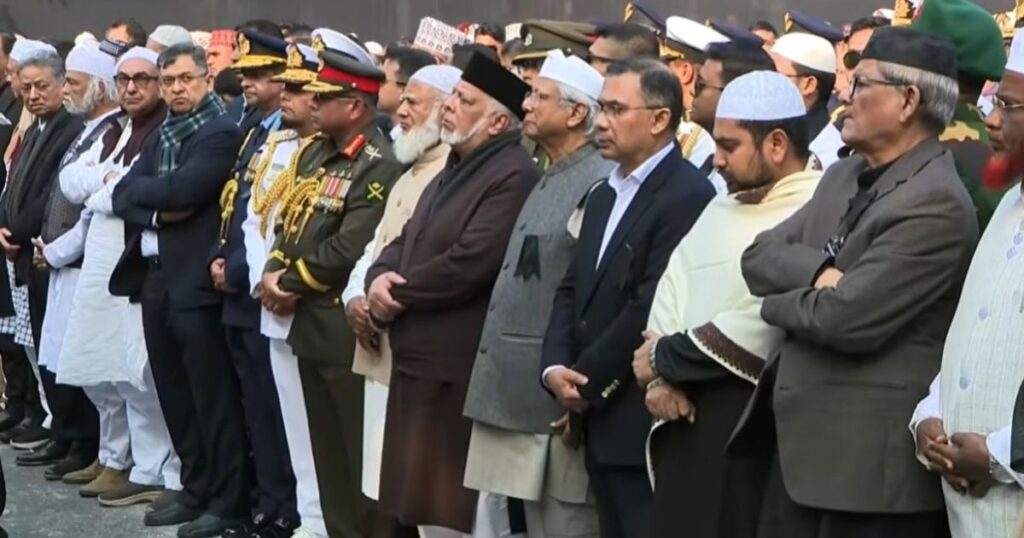 შহর العاصمة ঢাকায় আজ বুধবার (৩১ ডিসেম্বর) বিকেল ৩টা ৫ মিনিটে দীর্ঘদিনের প্রিয় নেত্রী ও তিনবারের সাবেক প্রধানমন্ত্রী ও বিএনপি চেয়ারপারসন বেগম খালেদা জিয়ার প্রথম নামাজে জানাজা শুরু হয়েছে। এই গুরুত্বপূর্ণ জনসভার স্থান হলো মানিক মিয়া অ্যাভিনিউ এবং জাতীয় সংসদ ভবনের দক্ষিণ প্লাজা সংলগ্ন এলাকা, যেখানে দীর্ঘ সময় ধরে হাজারো মানুষের উপস্থিতিতে পুরো এলাকা জনসমুদ্রে পরিণত হয়েছে। দেশের বিভিন্ন প্রান্ত থেকে আসা তাদের মধ্যে বিভিন্ন দলের নেতৃবৃন্দ, সাধারণ মানুষ, ছাত্র-শিক্ষকসহ অসংখ্য ভক্ত তাদের শেষ শ্রদ্ধা জানাতে উপস্থিত হন। জানাজার নামাজের ইমামতি করেন বায়তুল মোকাররম জাতীয় মসজিদের খতিব মাওলানা আবদুল মালেক।