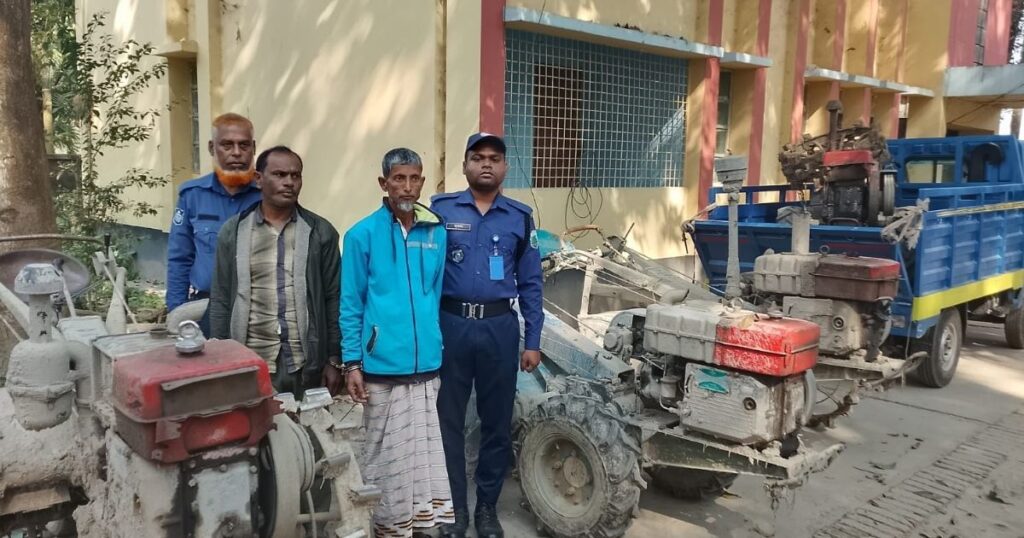 নওগাঁর মান্দা উপজেলায় ট্রাক্টর ও পাওয়ার টিলার চোরচক্রের দুই সদস্যকে গ্রেপ্তার করেছে পুলিশ। এ সময় চারটি পাওয়ার টিলার উদ্ধার ও চোরাই কাজে ব্যবহৃত একটি পিকআপ জব্দ করা হয়। গত মঙ্গলবার (১৭ ফেব্রুয়ারি) রাতে এই অভিযান চালানো হয়। আটকরা হলেন- দাড়ীক্ষেত্র গ্রামের মৃত মফিজ উদ্দিনের ছেলে ফারুক হোসেন (৪৫) এবং মহাদেবপুর উপজেলার লালবাড়ি গ্রামের মৃত আবুল
