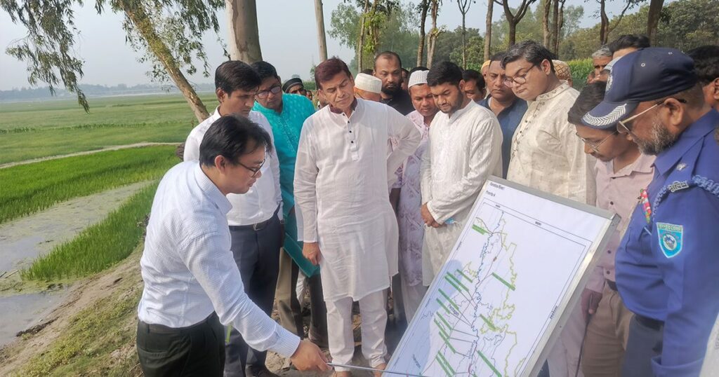 পঞ্চগড়ের দেবীগঞ্জে করতোয়া নদীর ভাঙন ও ক্ষয়ক্ষতি রোধে পানি উন্নয়ন বোর্ডের কর্মকর্তাদের সঙ্গে প্রতিমন্ত্রী ফরহাদ হোসেন আজাদ নদী পরিদর্শন করেন। এটি তার স্থানীয় সংসদ সদস্য হিসেবে করতোয়া নদীর সমস্যা সমাধানে প্রতিশ্রুতির অংশ। শুক্রবার (২৭ ফেব্রুয়ারি), দেবীগঞ্জ পৌর শহরের করতোয়া নদী ব্রিজের দক্ষিণ পাশে ময়নামতি চর সংলগ্ন এলাকায় তিনি এ পরিদর্শন কার্যক্রম চালান। এ সময় উপস্থিত ছিলেন পানি উন্নয়ন বোর্ডের সংশ্লিষ্ট কর্মকর্তা, দেবীগঞ্জ উপজেলা নির্বাহী কর্মকর্তা মাহমুদুল হাসান ও স্থানীয় নেতৃবৃন্দ।