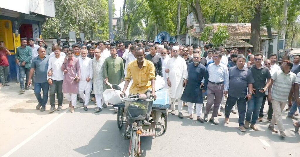 মর্গ থেকে ময়নাতদন্ত শেষে লাশ নিয়ে বিক্ষোভ মিছিল বের করে বিএনপি। মিছিলটি শহরের