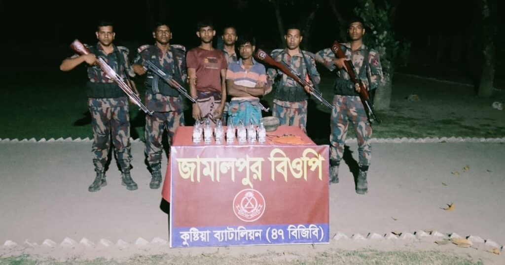 চোরাকারবারি- মিঠুন মন্ডল (৩৫) ও শহীদ হোসেন (২৫)-কে আটক করা হয়। তাদের কাছ থেকে ২০