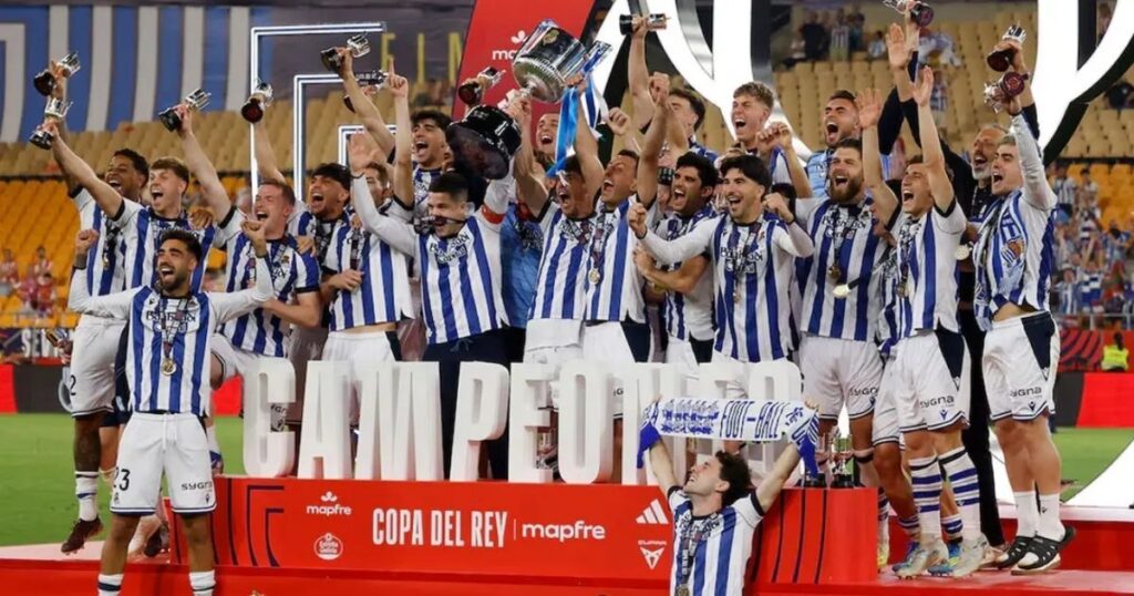 স্প্যানিশ ফুটবলের অন্যতম সম্মানজনক প্রতিযোগিতা কোপা দেল রের ফাইনাল ছিল এক রুদ্ধশ্বাস Hickey। ফুটবল বিশ্বে এই বড় মঞ্চে সেভিয়ার মাঠে অনুষ্ঠিত এই ম্যাচে শক্তিশালী অ্যাটলেটিকো মাদ্রিদকে হারিয়ে চতুর্থবারের মতো শিরোপা জিতেছে রিয়াল সোসিয়েদাদ। নির্ধারিত সময় ও অতিরিক্ত সময়ের খেলা ২-২ গোলে সমতায় শেষ হওয়ার পর পেনাল্টি শুটআউটে নিজেদের চূড়ান্ত দক্ষতার পরিচয় দেন সোসিয়েদাদের খেলোয়াড়রা। এই