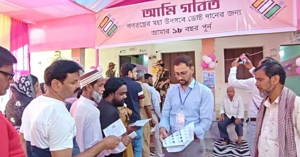 ভোটের শুরুর দিকে মুর্শিদাবাদের হরিহরপাড়ার একটি বুথে যান্ত্রিক গোলযোগের কারণে ভোট